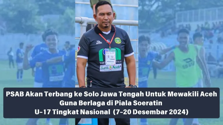 Bonden Persatuan Sepakbola Aceh Besar (PSAB) ini akan terbang ke Solo Jawa Tengah untuk mewakili Aceh guna mengikuti Piala Soeratin U-17 tingkat nasional yang akan berlangsung 7-20 Desember 2024.