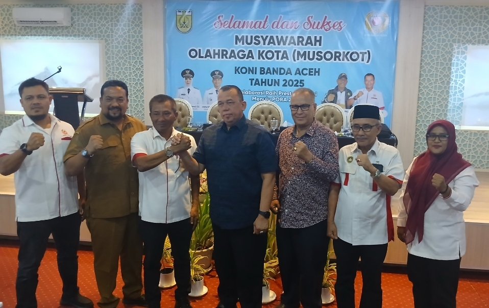 Kana Berita | Banda Aceh - Tanpa Kandidat pesaing lain yang mendaftarkan sebagai Calon Ketua Komite Olahraga Nasional Indonesia (KONI) Banda Aceh, H. Heri Julius S.Sos.MM terpilih secara aklamasi sebagai Ketua KONI Kota Banda Aceh periode 2025–2029, pada Musyawarah Olahraga Kota (Musorkot), di Kota Banda Aceh, Selasa (19/8/2025).