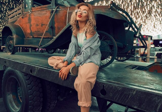 Nighttime Serenity: Woman’s solitude on a utility trailer